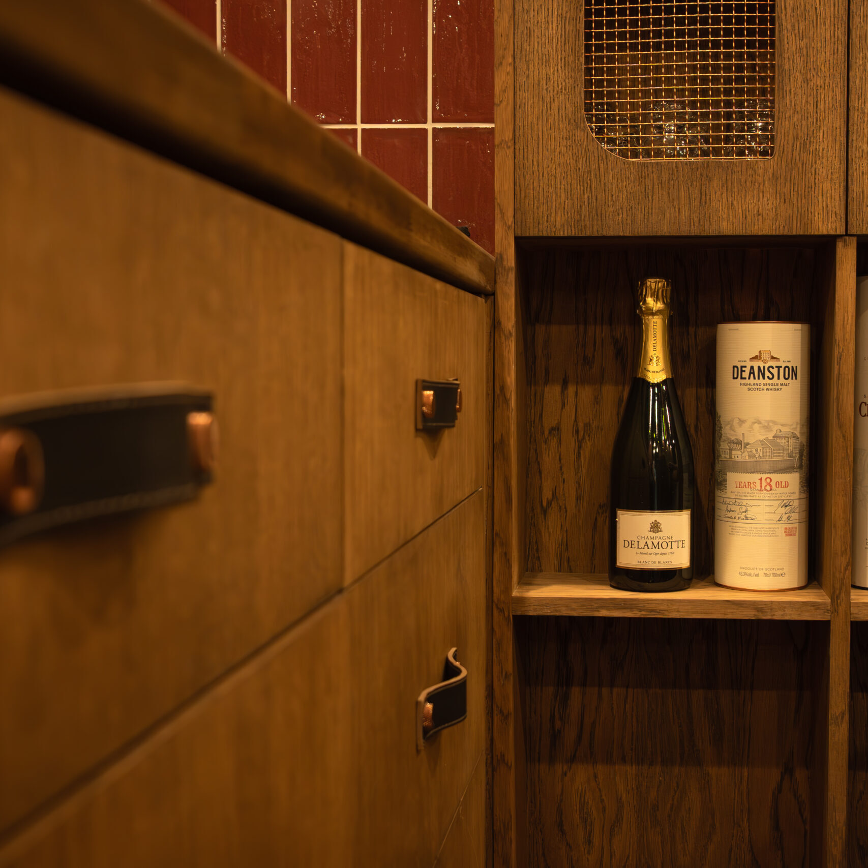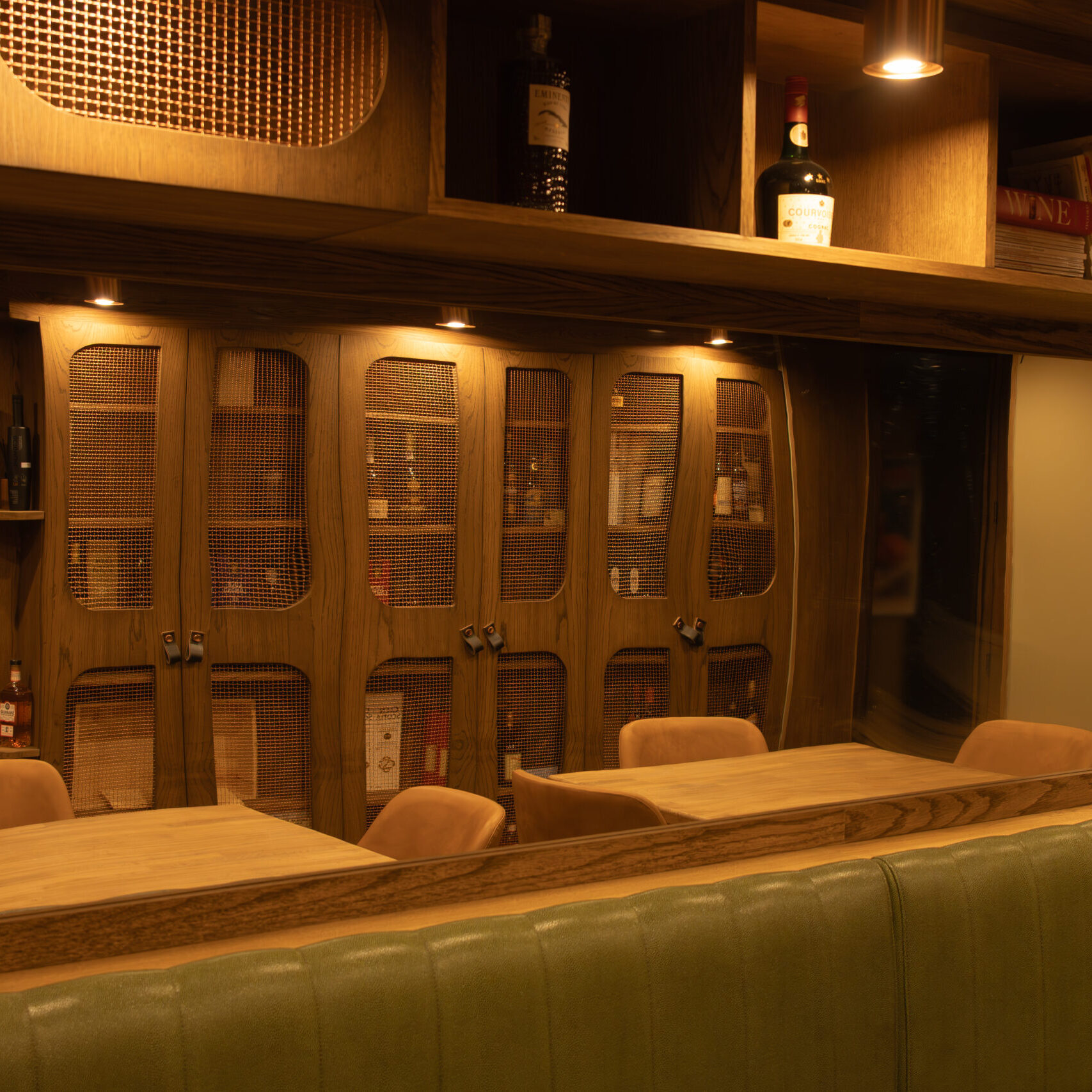 We were delighted to return to Cask & Vine on Edinburgh’s Royal Mile to deliver a fully bespoke refit of their basement. The brief was to transform the compact area into an inviting space for wine and whisky tasting experiences—and everything you see, from floor to ceiling, was custom-designed for this project.